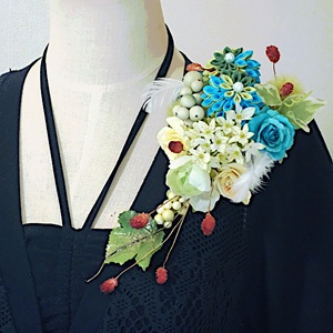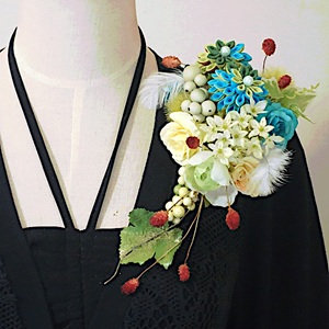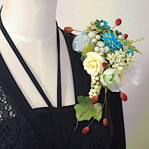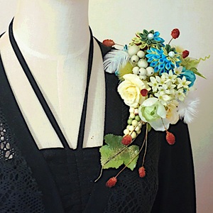 気取らない雰囲気で、見るものを魅了するような美しさのあるコサージュです。